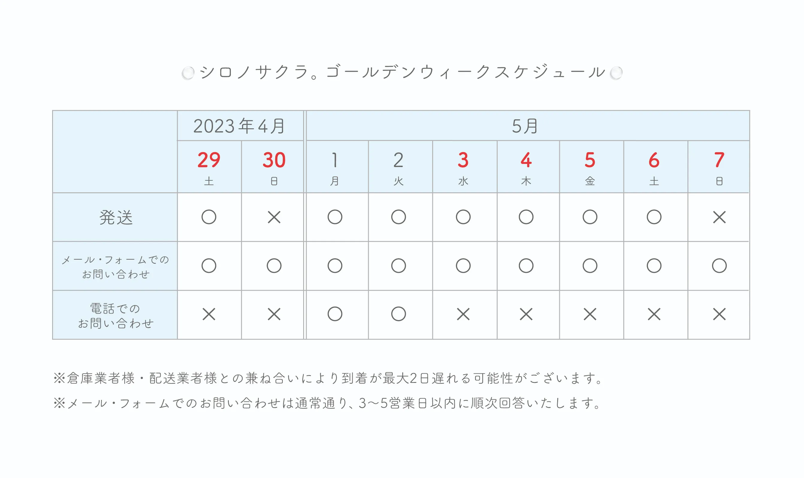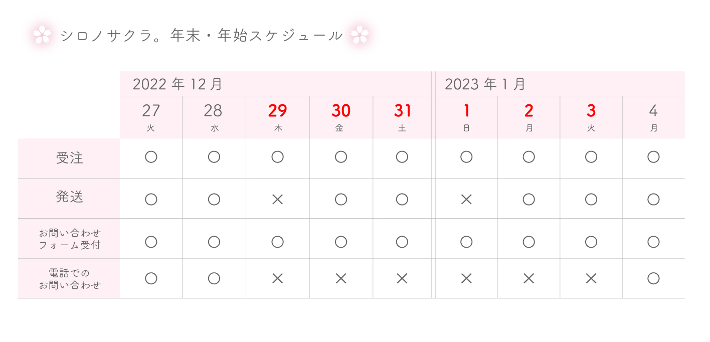 平素よりシロノサクラをご愛顧いただきありがとうございます。