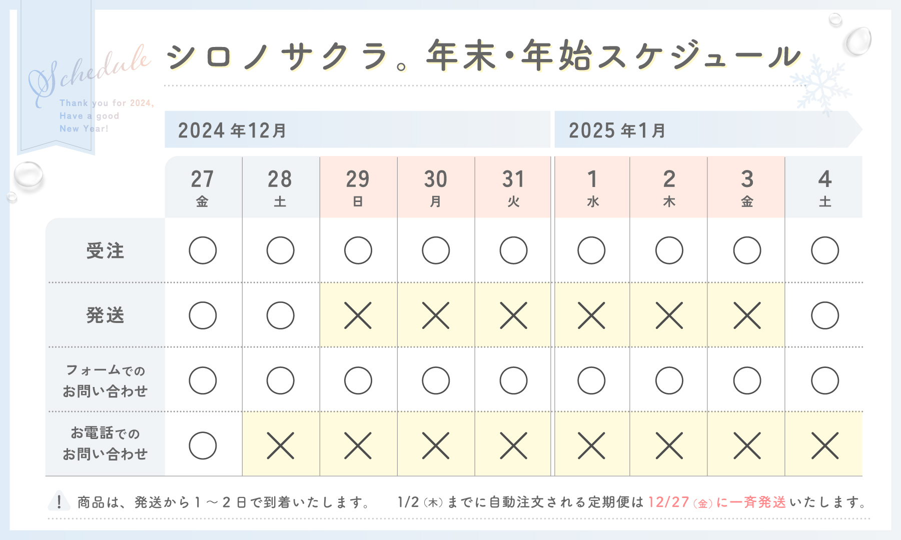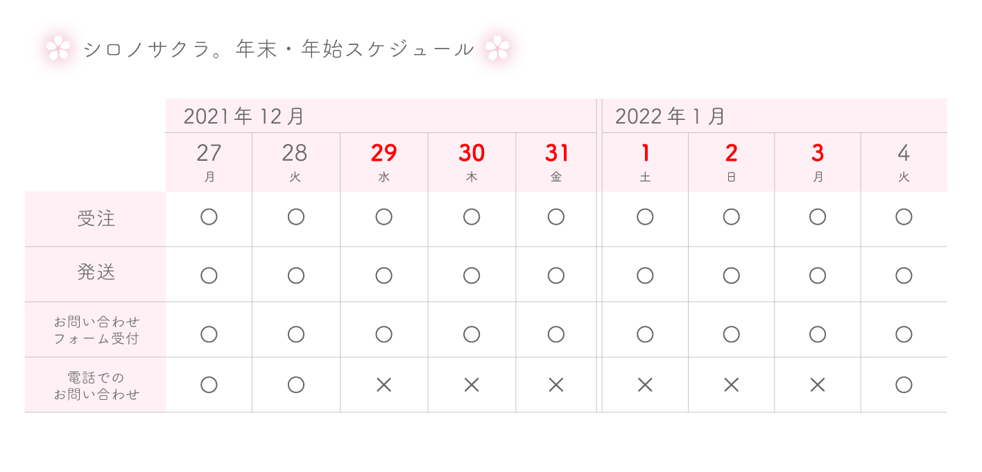 平素よりシロノサクラをご愛顧いただきありがとうございます。